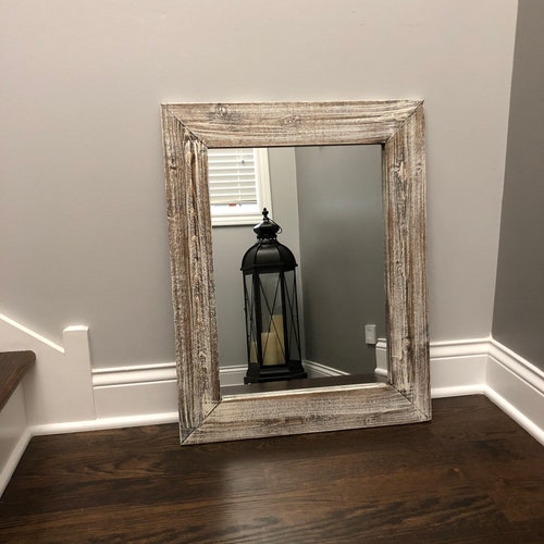 Antique White Bathroom Wood Mirror Farmhouse Decor Rustic Etsy Uk